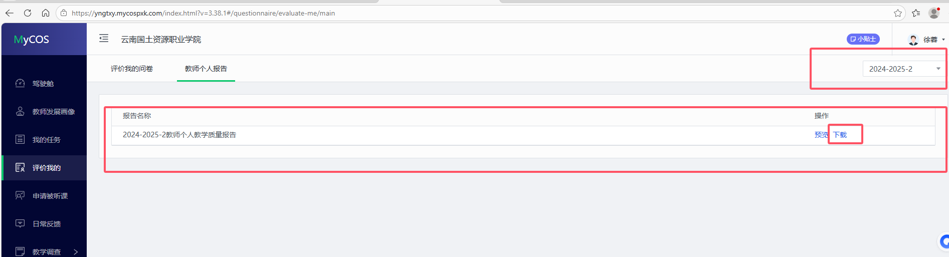 云南国土资源职业学院教学质量管理平台教师个人操作流程